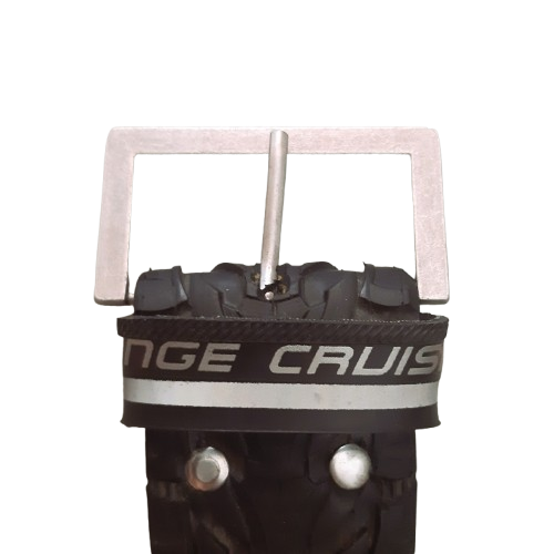 Stoere fietsband riem van 6 cm breed met rechthoekige gesp. Deze riem is passend voor maten S t/m XXL. Heb je liever een andere maat? Dat kan geregeld! Voer jouw maat in bij de bestelopties. Lees in de beschrijving handige informatie over riem maten.