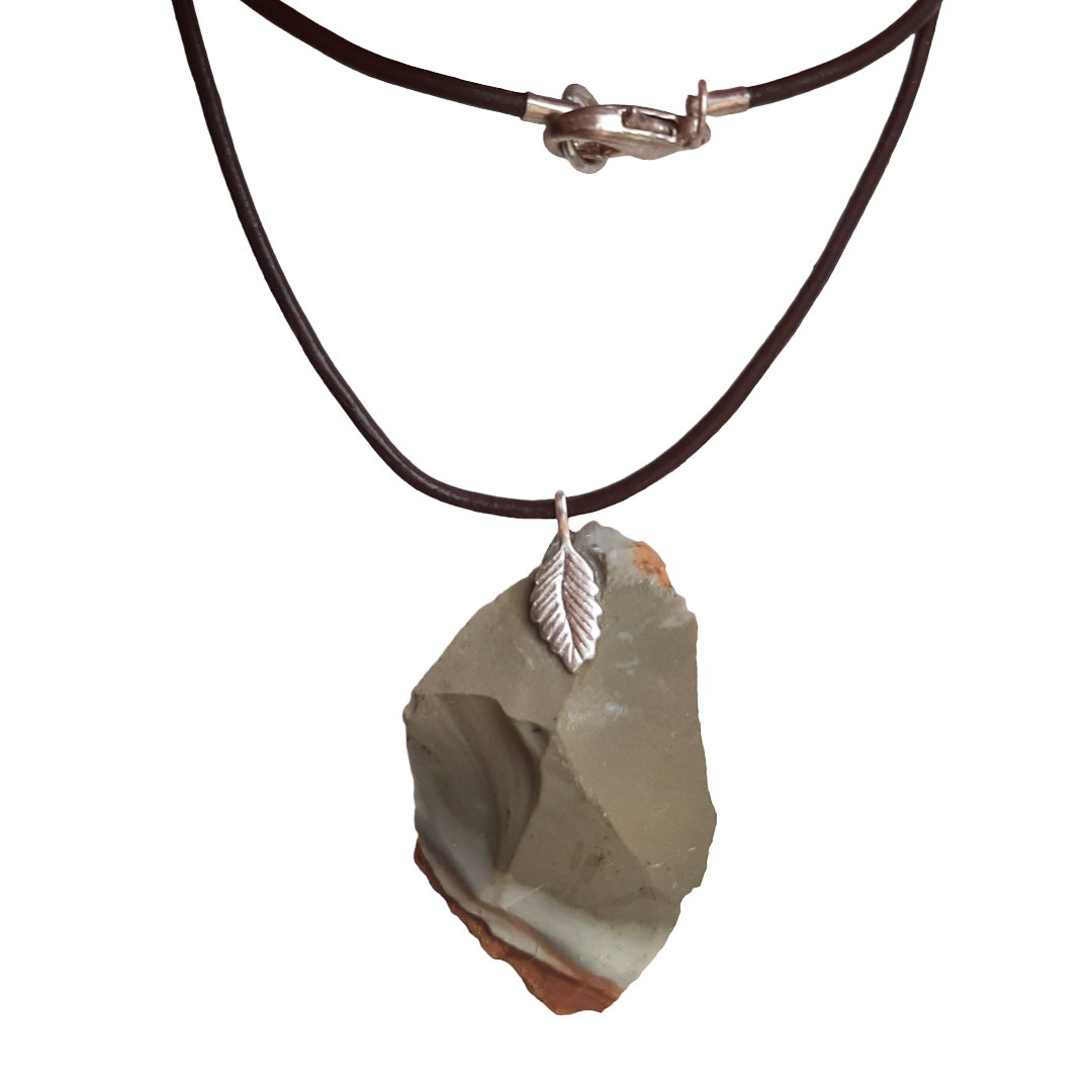 Bruin leerkoord met een Jaspis Polychroom hanger. Ook verkrijgbaar met andere soorten edelsteen.