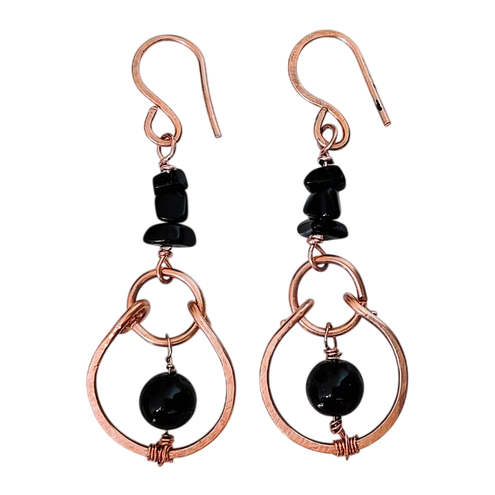 Over koperen oorbellen met Onyx en Obsidiaan