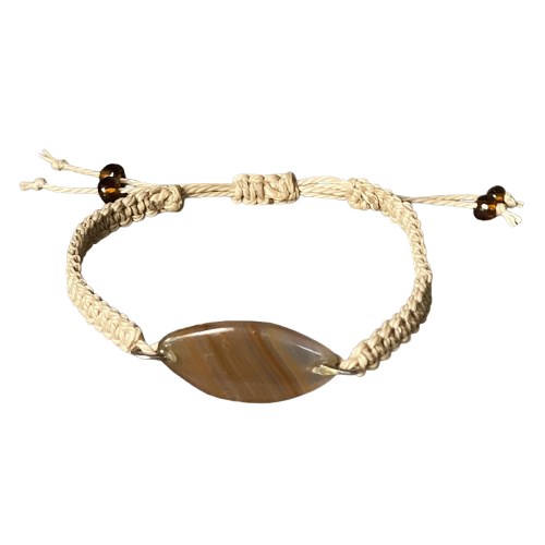 Macramé armbandje van lichtbruin waxkoord met een een mooi gestreepte Agaat en schuif-sluiting.