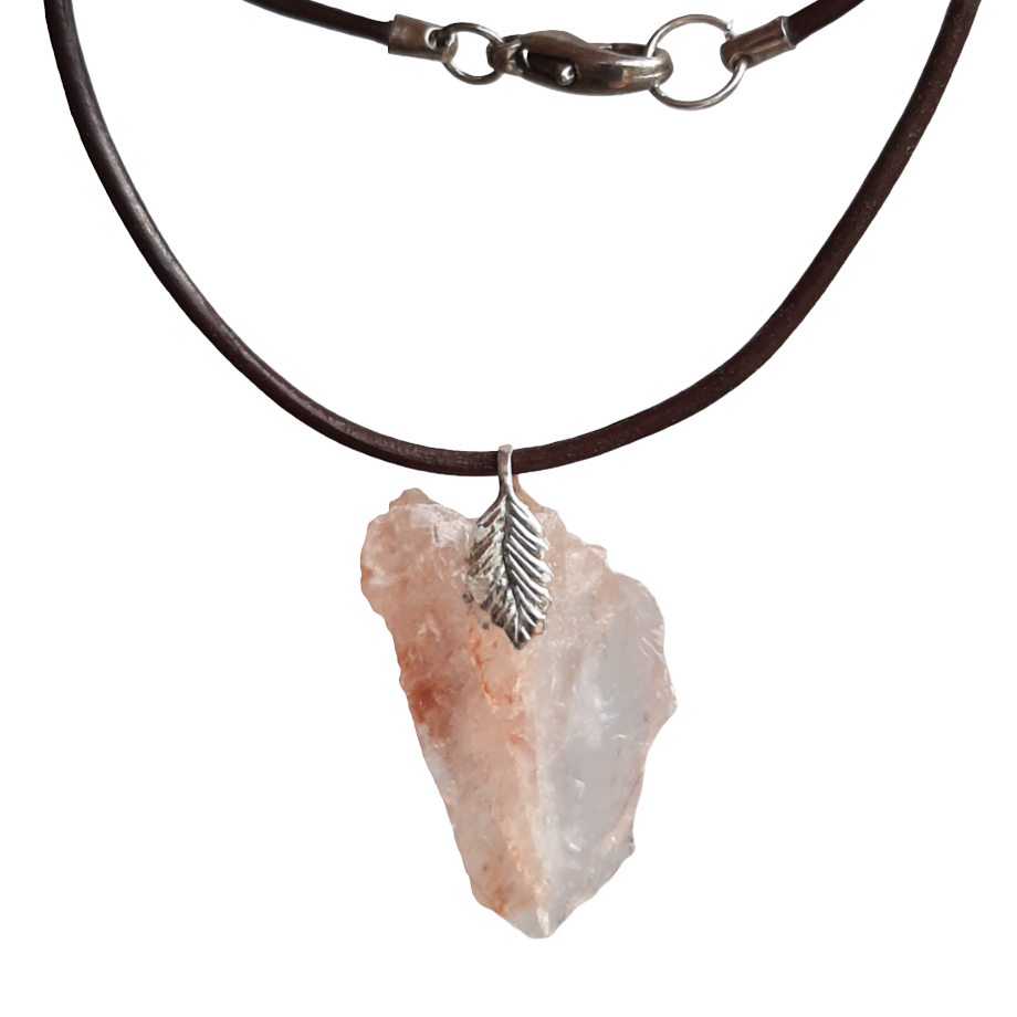 Bruin  leerkoord met een Red Healer hanger. Ook verkrijgbaar met andere soorten edelsteen.