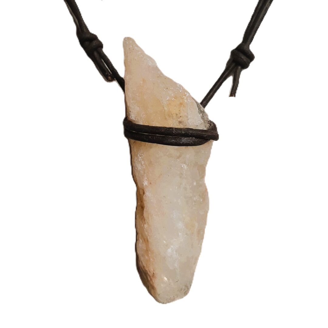 Door haar eenvoud zo mooi, deze bruin leren ketting met een natuurlijke (niet verhitte) Ruwe Citrien. De ketting van de Ruwe Citrien is afgewerkt met schuifknoop, zodat deze voor elke drager geschikt is. Desgewenst wordt de ketting geleverd met een verzilverd slotje (vermeld dit in de opmerkingen bij je bestelling). De totale lengte van de ketting is dan ca. 47cm. Verkrijgbaar met veel verschillende soorten edelsteen.