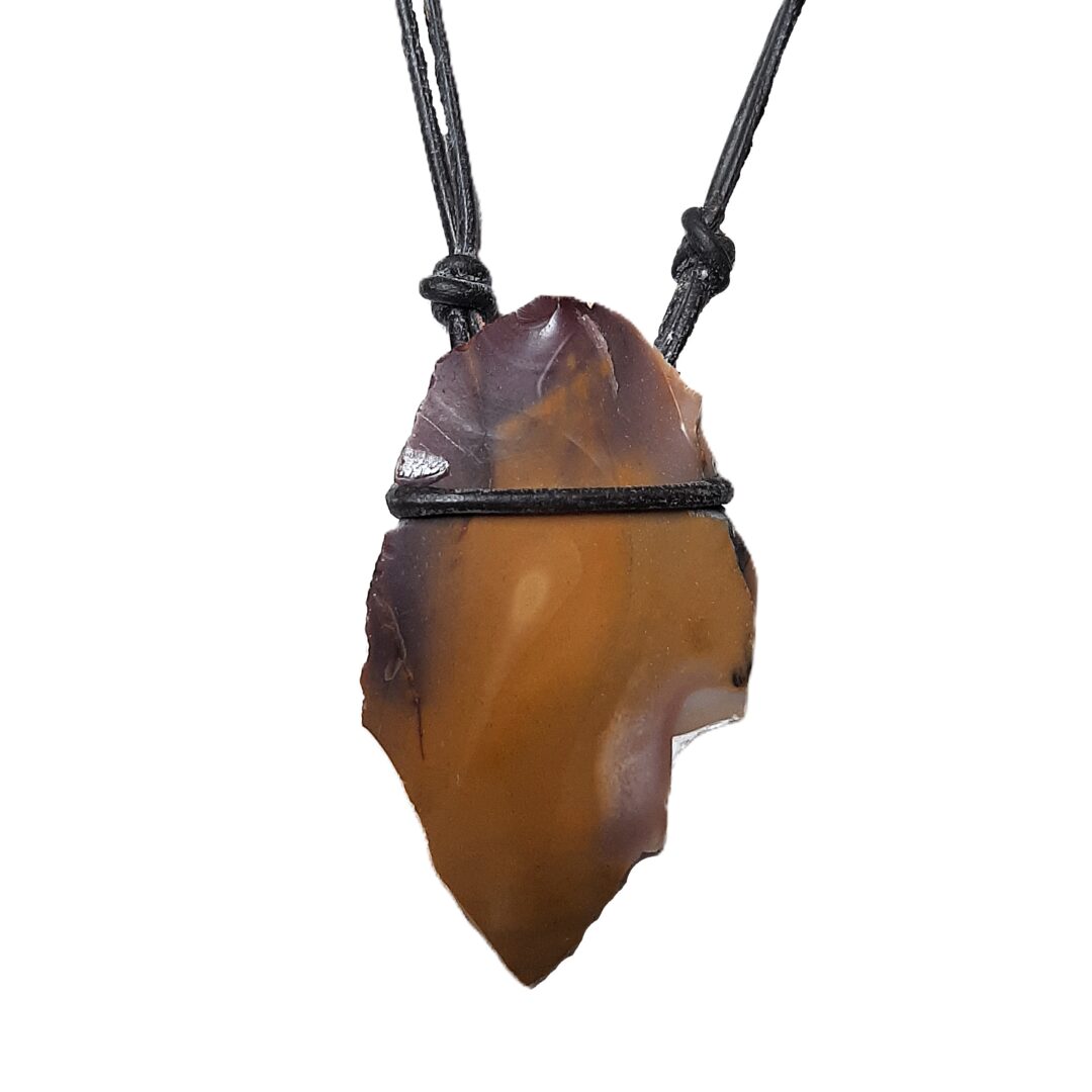 Elke edelsteen heeft zijn eigen werking en unieke vorm, zo ook deze ruwe oker kleurige Mokaïet (met een beetje bordeaux) aan leerkoord. Deze balancerende edelsteen is er ook in volledig bordeaux. Het koord waaraan de steen is bevestigd is voorzien van een schuifknoop. Hierdoor is de ketting voor iedereen draagbaar en aan te passen in diverse lengten. Desgewenst wordt de ketting geleverd met een verzilverd slotje (vermeld dit in de opmerkingen bij je bestelling). De lengte van de ketting is dan ca. 47cm en niet variabel. Momenteel hebben we een breed scala aan stenen voorradig, die je kunt vinden bij de overige producten. Neem voor kettingen met andersoortige ruwe edelstenen een kijkje in onze webwinkel.