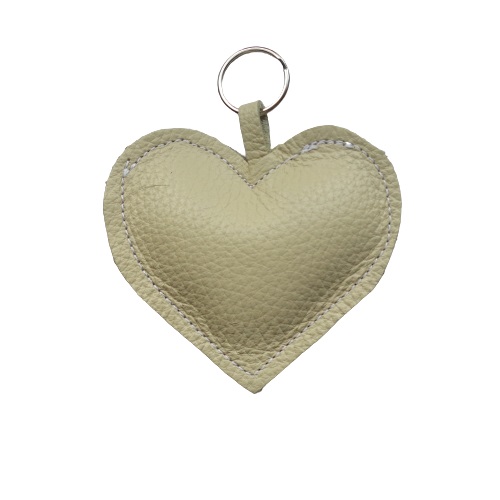 Sleutelhanger gemaakt van hergebruikt crèmekleurig leer, gevuld met schapenwol. Puur natuur! Geef eens wat liefs cadeau, aan jezelf of aan een ander. De hanger kan ook worden gebruikt als tashanger. Het hart meet circa 8 x 8 cm. Het leer is afkomstig van onder andere bankstellen en snijresten van een fabriek. Zelfs de sleutelringen zijn gerecycled. Door deze materialen opnieuw te gebruiken in andere producten, geeft Madame Chantal ze een waardevol tweede leven.