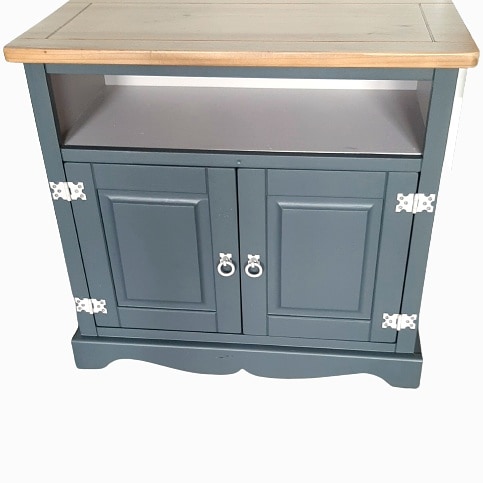 Unieke houten kast die ik heb hersteld en een complete metamorfose gegeven. De buitenzijde is mat grijs, de binnenkant mat taupe. Het bovenblad is naturel en afgewerkt met transparante lak. De metalen handgreepjes en scharnieren in middeleeuwse stijl zijn taupe gekleurd. De kast kan alleen worden afgehaald (wij mailen of bellen je voor een afspraak).