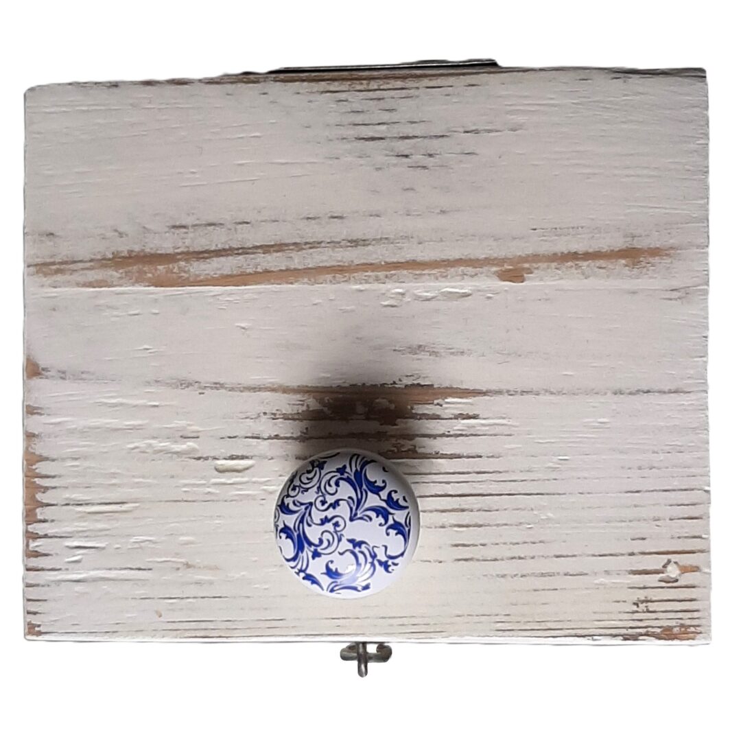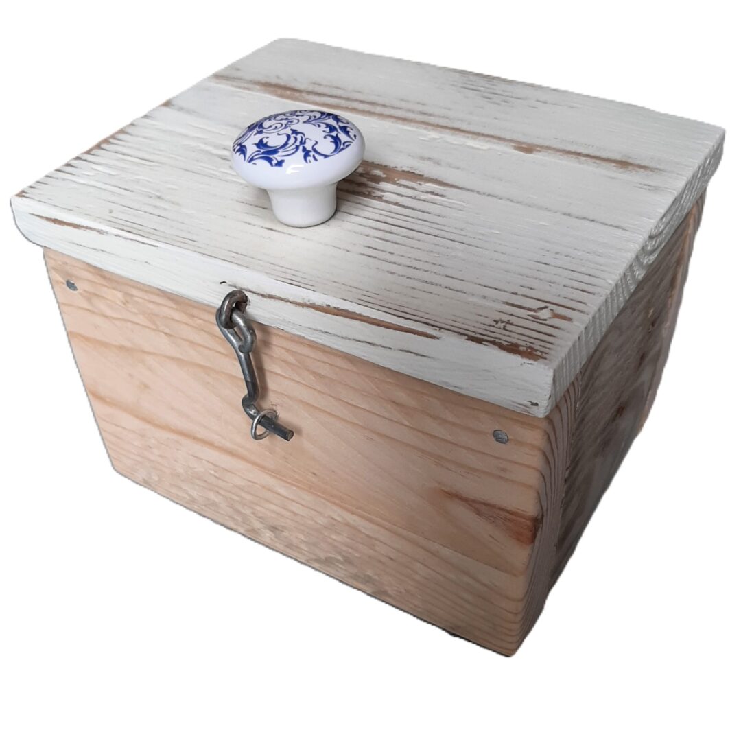 Rustiek houten kistje met wit deksel en prachtige vintage look. Ideaal voor het bewaren van bijvoorbeeld sleutels, sieraden of kleine rondslingerende items die je altijd kwijt raakt. Of gebruik het als functionele verpakking van een speciaal kadootje.