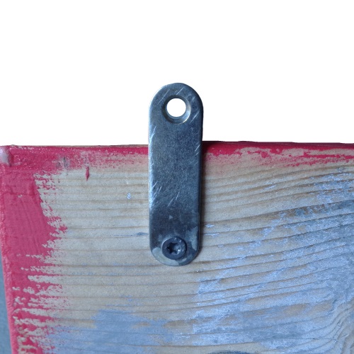 Kleurrijke kapstok met een variëteit aan gerecyclede haken. De kapstok is gemaakt van steigerhout dat door een speciale behandeling een verweerd, 'vintage' uiterlijk heeft gekregen, met een felroze kleur. Aan de achterzijde bevinden zich 3 haakjes waarmee de kapstok stevig aan de muur bevestigd kan worden. De kapstok is geschikt voor zware belasting.