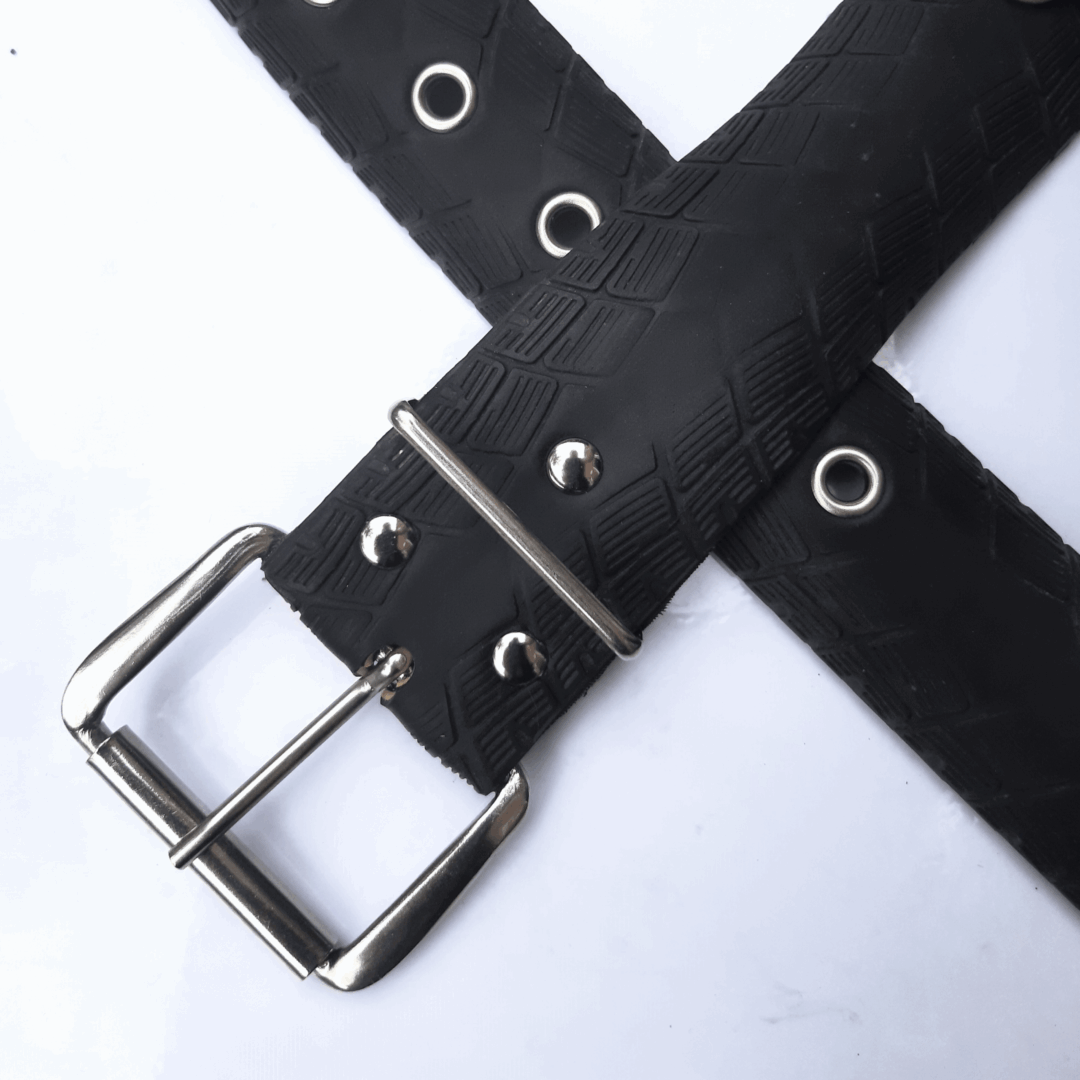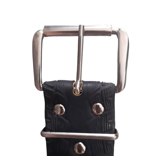 Stoere fietsband riem van 5 cm breed met rechthoekige gesp. Deze riem is passend voor maten XS t/m L. Heb je liever een grotere maat? Dat kan geregeld! Voer jouw maat in bij de bestelopties. Lees in de beschrijving handige informatie over riem maten.
